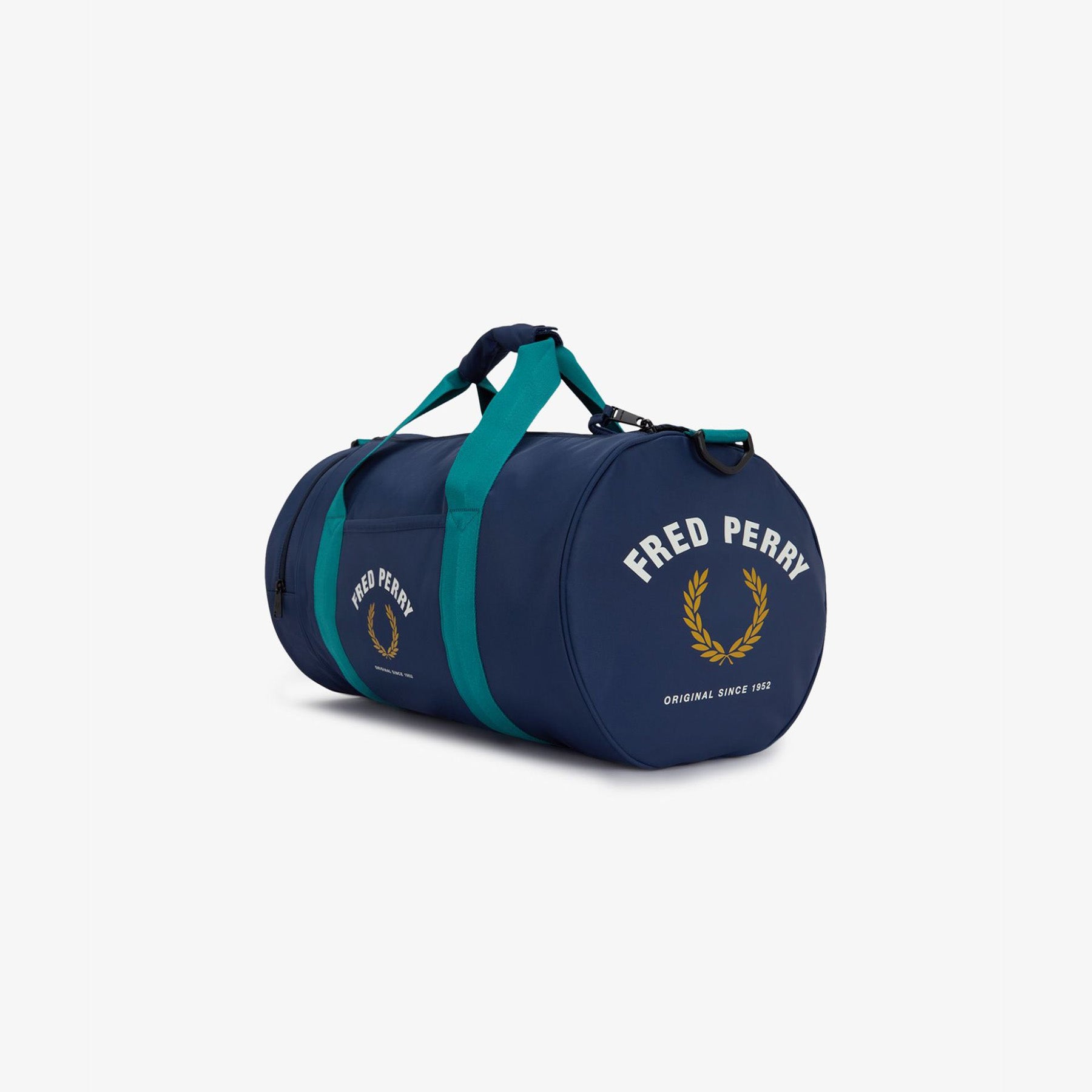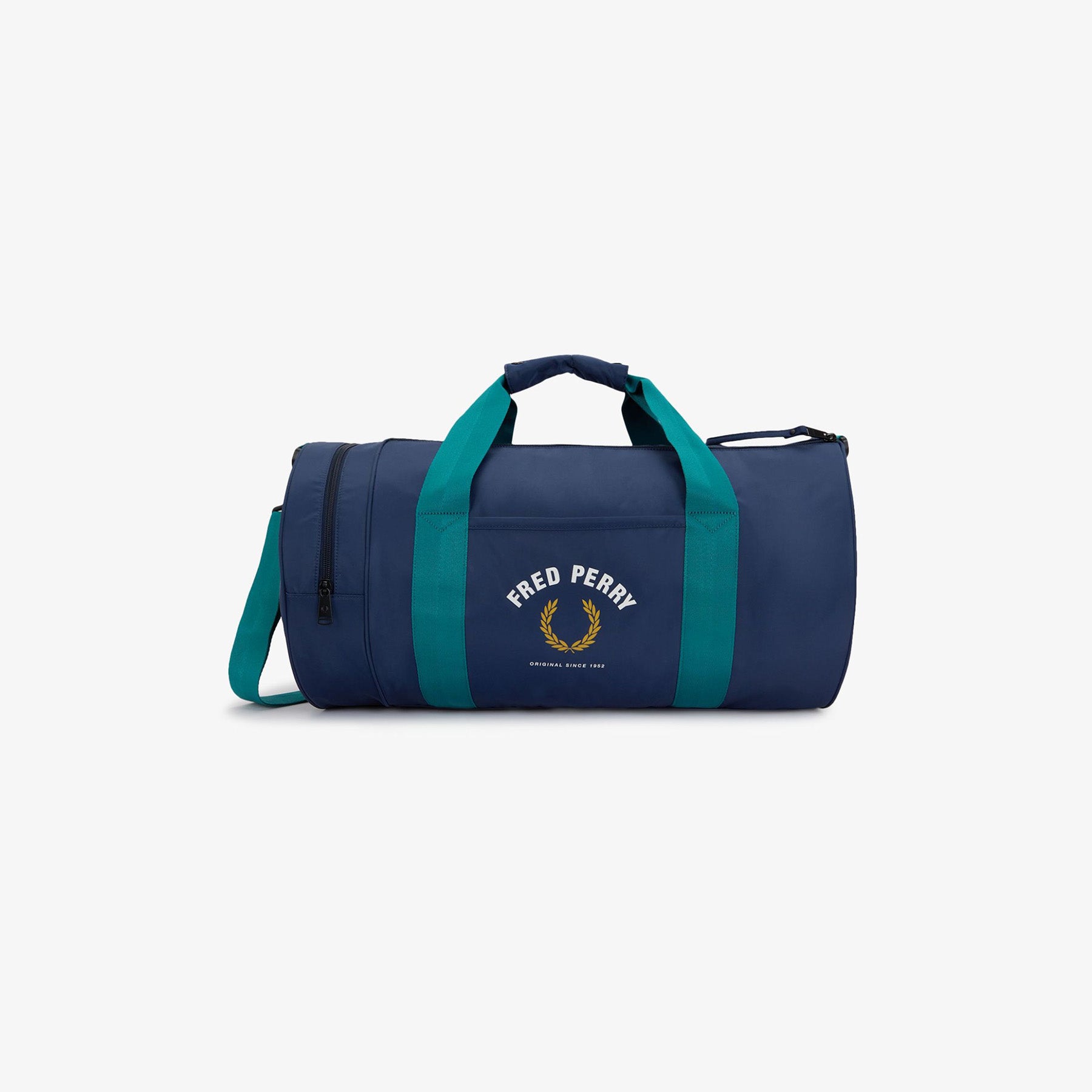 An instant subcultural staple. Fred Perry's iconic barrel bag, updated in a nylon twill finish with colour blocking inspired by vintage sportswear. Bold, practical and attention grabbing, thanks to the seasonal print at either end.