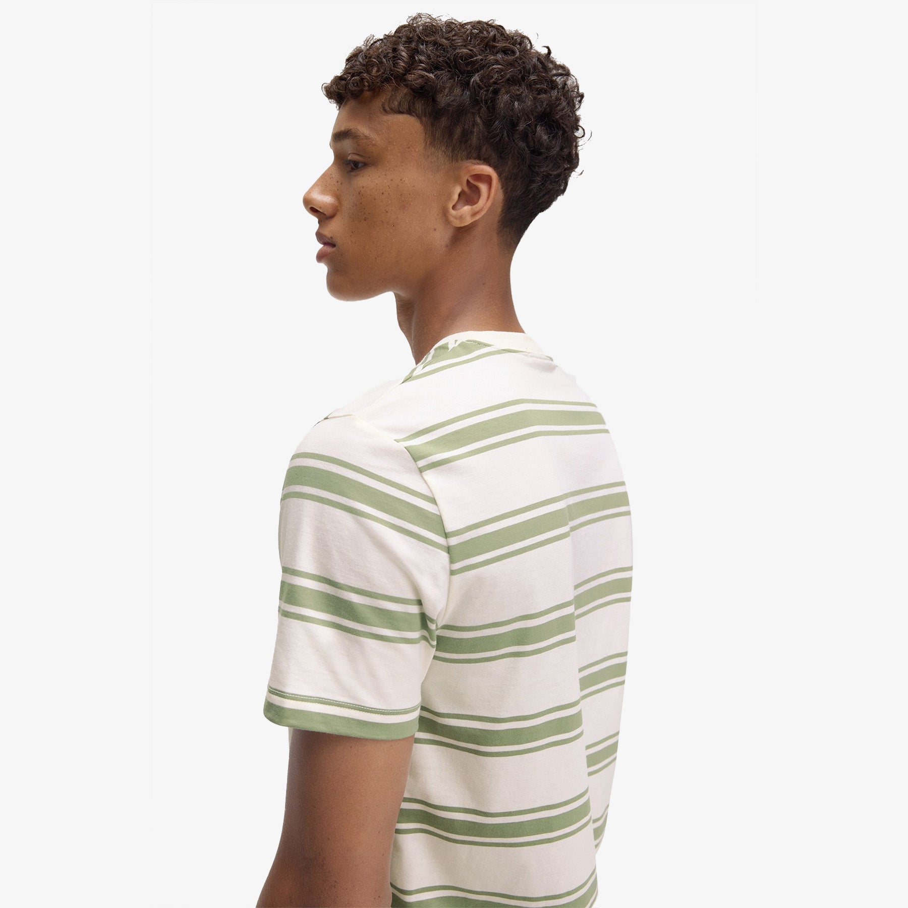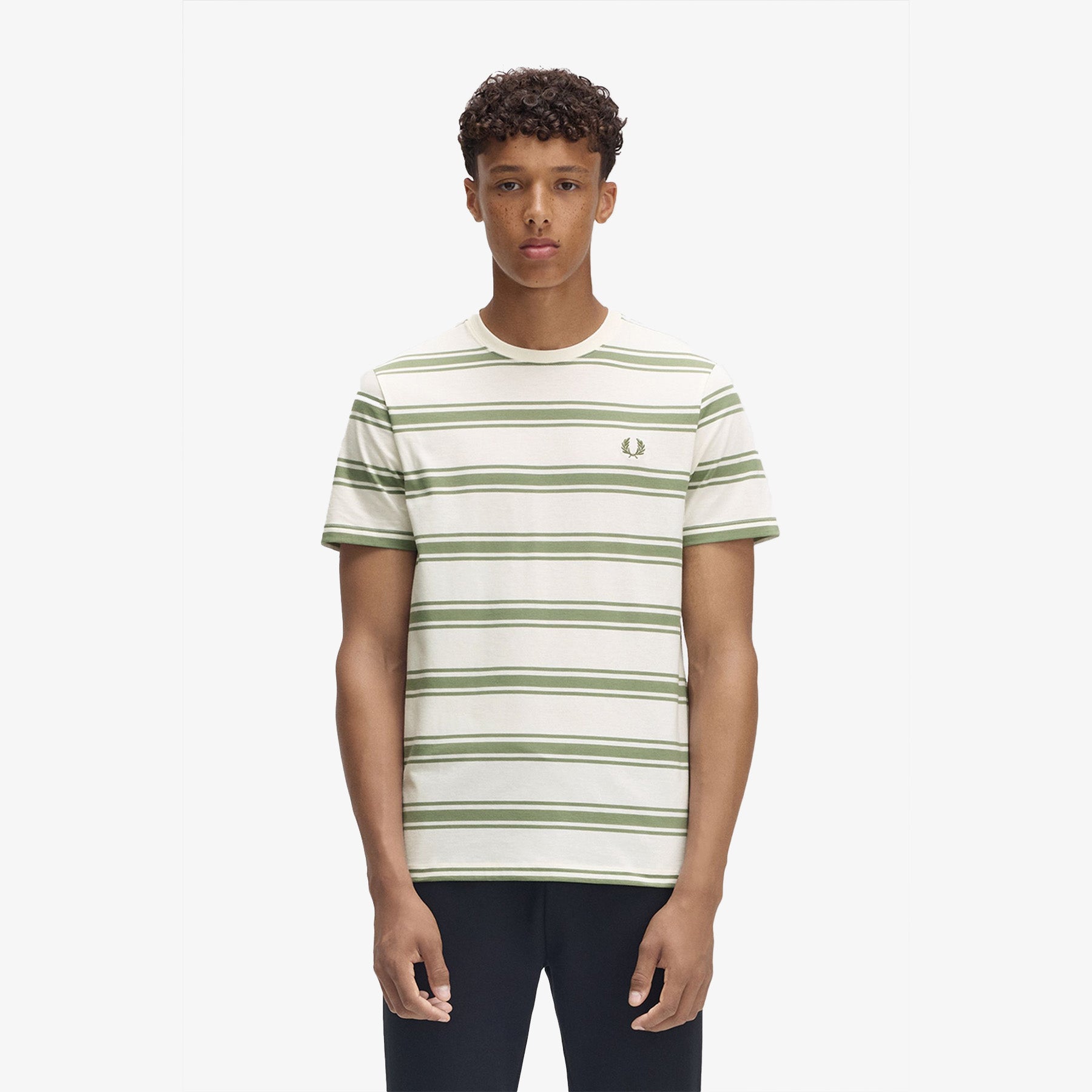 Fred Perry's fine stripe t-shirt adds interest to a simple silhouette, designed with yarn dyed stripes and a contrasting ribbed crew neck. A solid update to the everyday jeans-and-tee aesthetic - and built to last in hard-working cotton.
