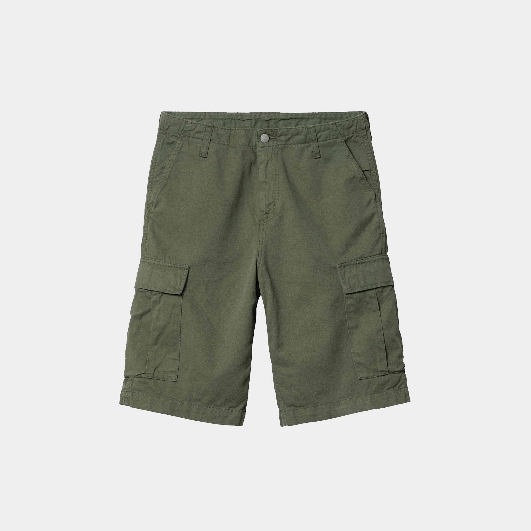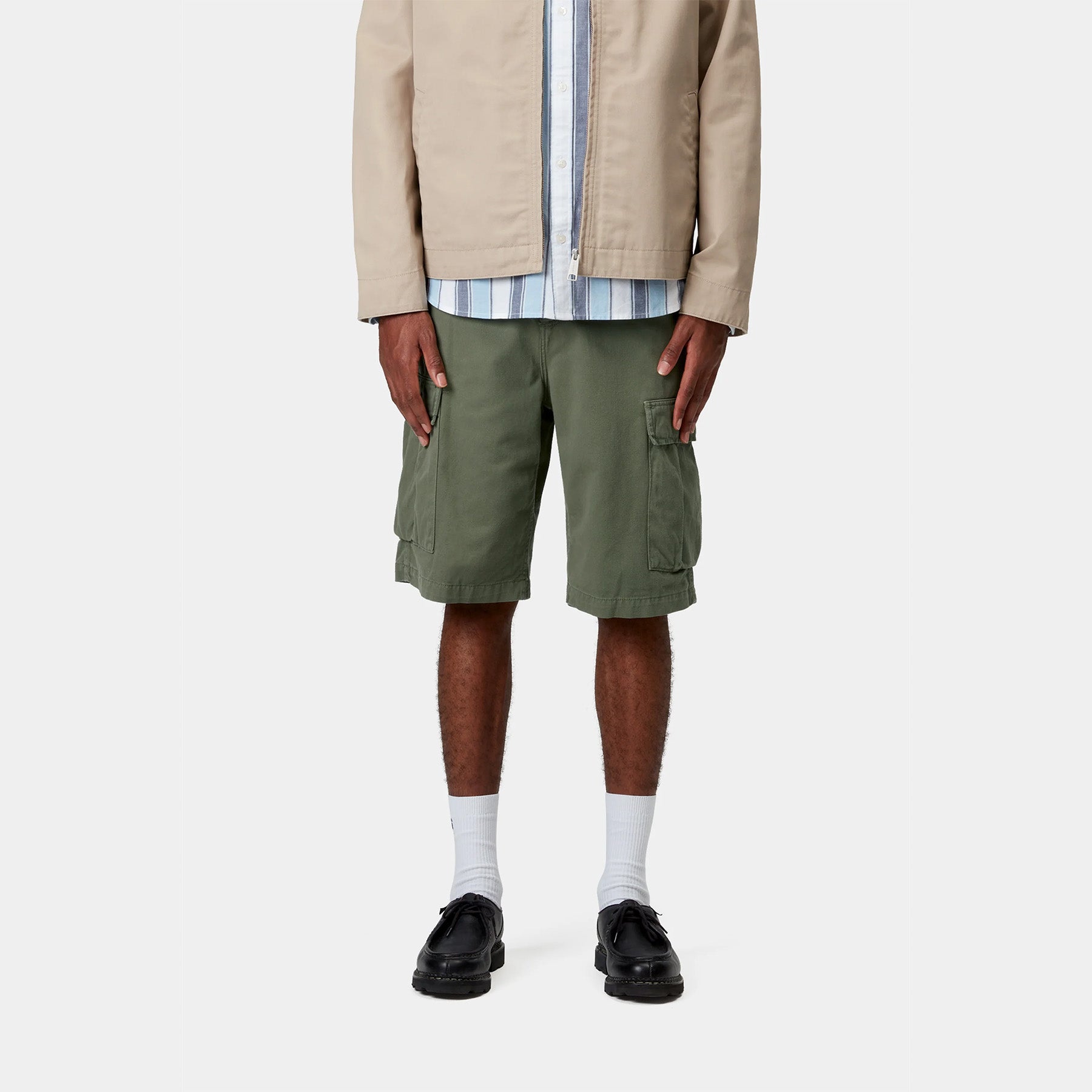 The Regular Cargo Short is constructed from Moraga twill, which is a midweight organic cotton fabric that has been garment-dyed, resulting in subtle color variations throughout and a softer feel. The style is cut in a regular fit with a low waist. Patch pockets on the legs nod to the garment's military influences.