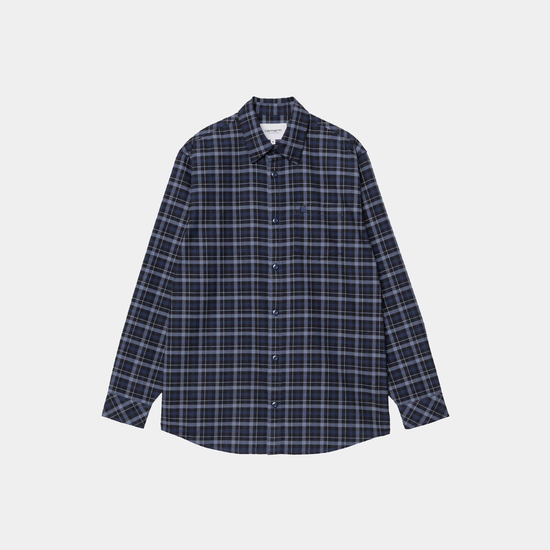 The L/S Widmark Shirt is made in a loose fit from midweight cotton flannel featuring an allover check pattern. An embroidered ‘C’ Logo appears on the chest pocket.
