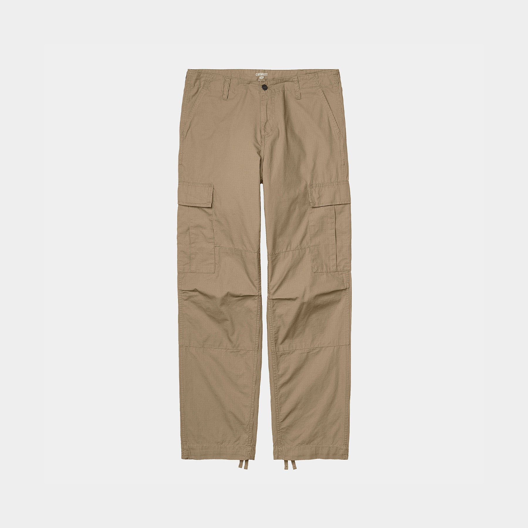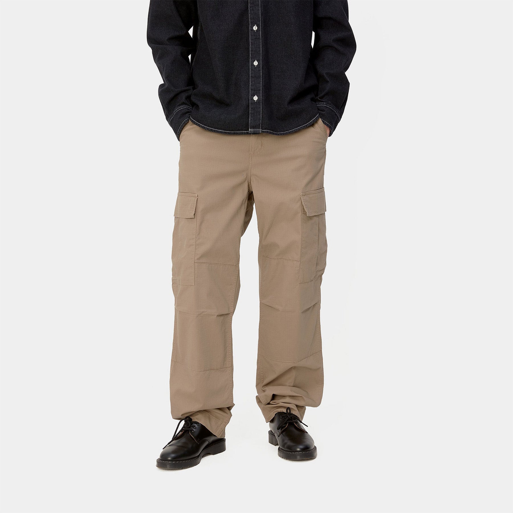 The Regular Cargo Pant is made of midweight cotton Columbia ripstop, which has been rinsed for a softer feel. The style is cut in a regular fit with a low waist and features double-layer knees, adding to its robust qualities. Multiple pockets throughout nod to the garment's military-style influences, and tie detailing at the cuffs allow for the fit to be adjusted.