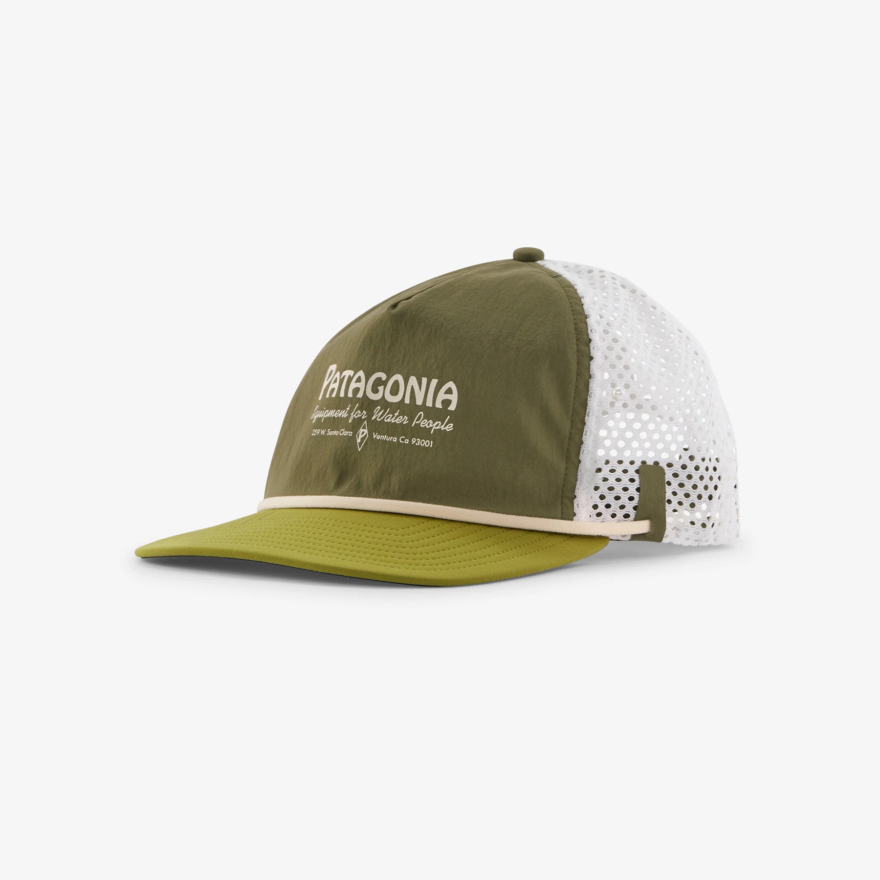 Like its namesake, our water-loving Merganzer Hat looks as good duck-diving waves as it does searching for them, with a brim rope that doubles as a stowable chin strap. Built of 96% NetPlus® postconsumer recycled nylon made from recycled fishing nets to help reduce ocean plastic pollution/4% spandex plain weave, with a durable water repellent (DWR) finish made without intentionally added PFAS. Made in a Fair Trade Certified™ factory.