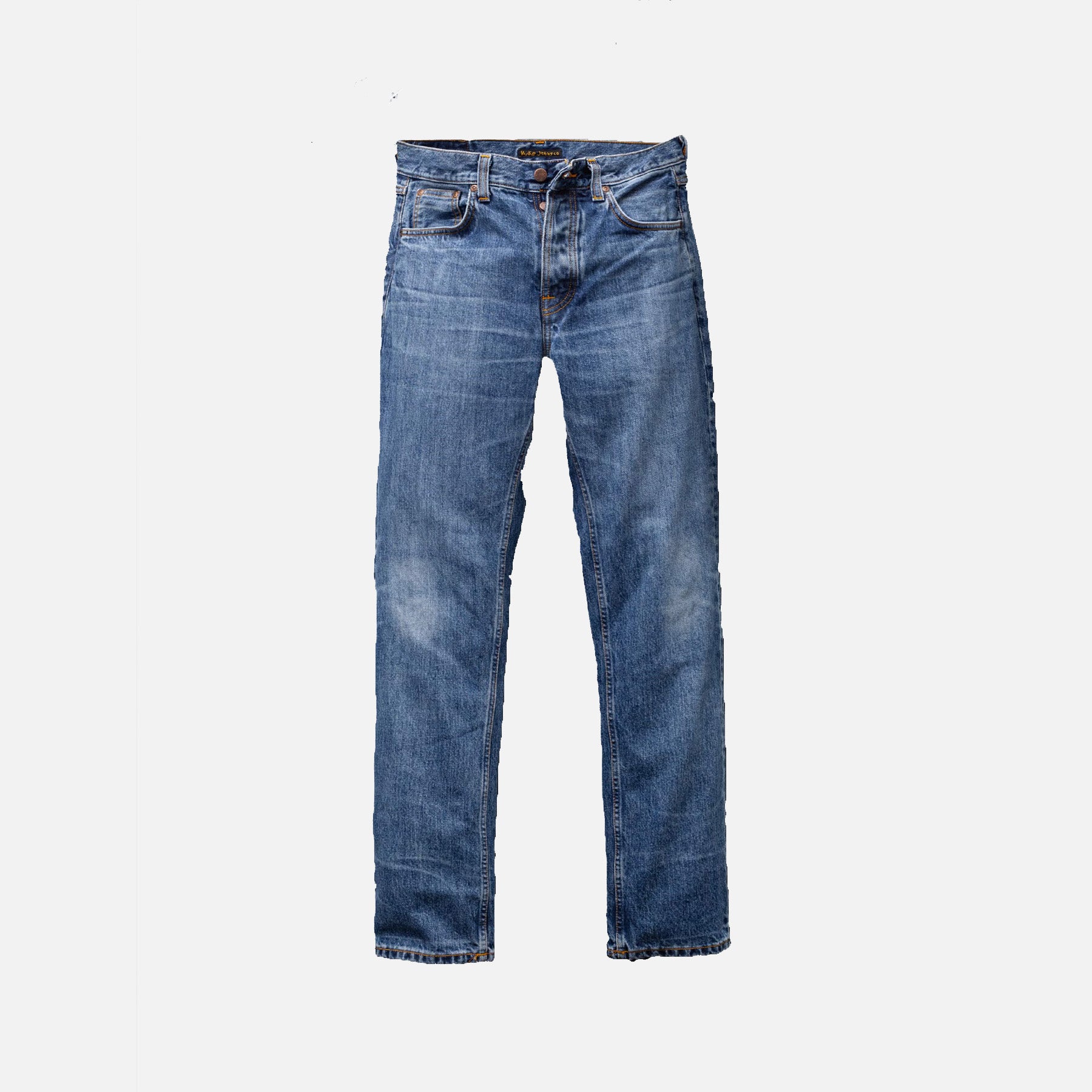 The Rad Rufus Raw Tracks faithfully replicate the fades and wear marks of an original pair of worn-in Nudie Jeans. Using a precise method, every detail of the original has been captured and recreated on a new pair of jeans. Crafted from exceptional denim, these jeans are washed to the perfect clear mid-blue indigo tone. The fabric features a rugged texture with pronounced vertical slubs and a marble-like pattern accentuating the darker areas. The recreated fades and wear marks deliver an undeniably authentic worn-in aesthetic.