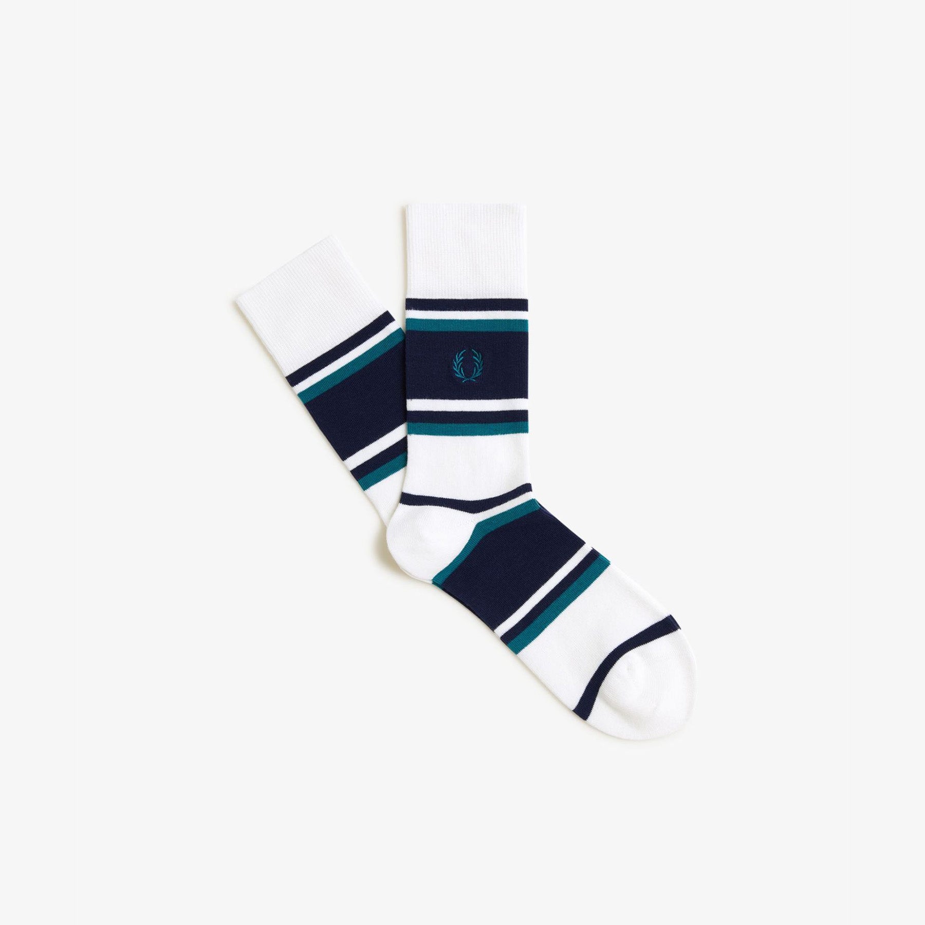 Cotton-blend socks sporting clean-cut stripes. A subtle nod to the visual language of tennis, accompanied by Fred Perry's embroidered Laurel.