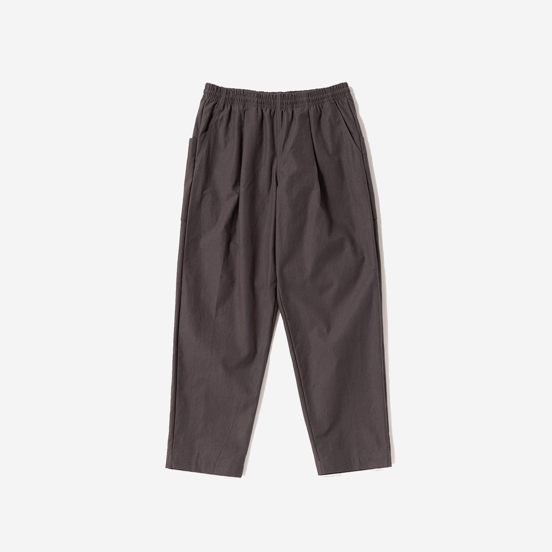 With the motif of umpire pants, a large pocket is placed from the waist to the hips. Umps Pants are made of a dry cotton blend from the USA and Australia, using yarns spun in a way that creates neps by adjusting the machine when carding the raw cotton (a process to remove impurities and align the fibers in a certain direction). This is a very technical process, and it is difficult to get the neps to be strong or weak. On the other hand, it has a natural and rustic look. Since nep yarn is a weak yarn that breaks more easily than usual, delicate control is necessary when weaving. Therefore, we use an old-fashioned "rapier loom," which is capable of weaving with strength on weak yarns such as silk.