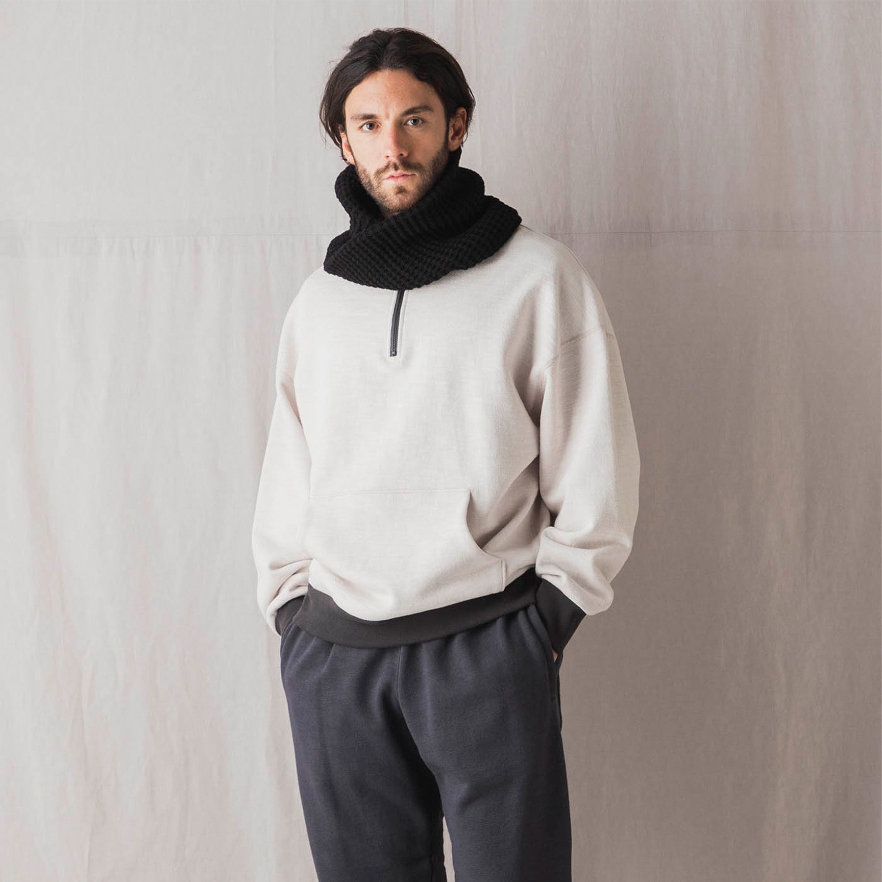 Jackman GG Sweat Half Zip - Rosin White x Ink Black